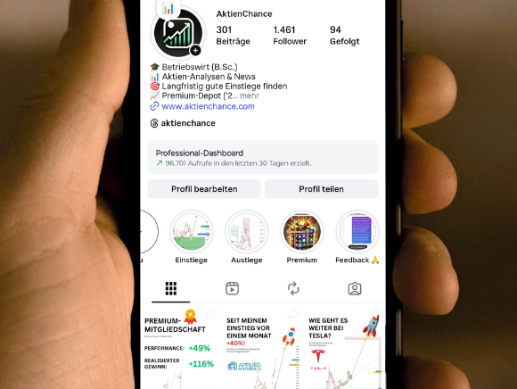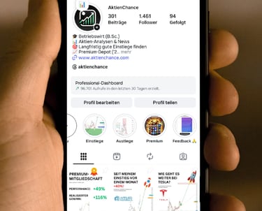 Mein Name ist Stephan. Ich bin studierter Betriebswirt (B. Sc.) und agiere bereits seit 2011 als privater Investor an den Märkten. Im Dezember 2024 habe ich mich dazu entschlossen, meine Analysen öffentlich zu teilen und den Instagram-Kanal AKTIENCHANCE ins Leben gerufen, woraufhin im März 2025 der Start meiner Premium-Mitgliedschaft folgte.