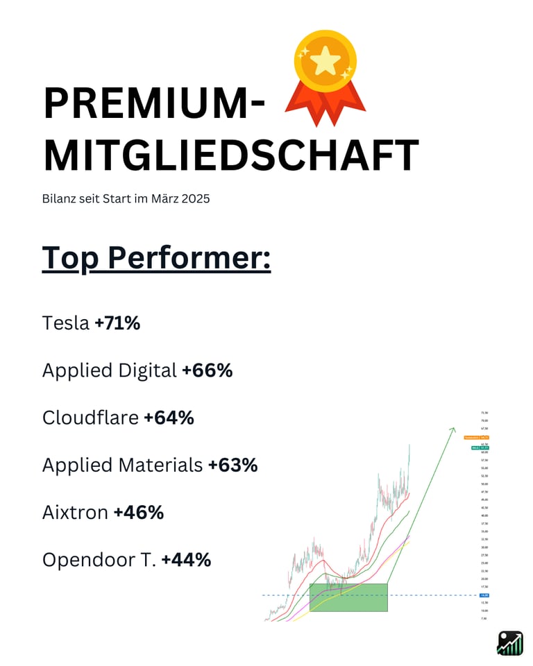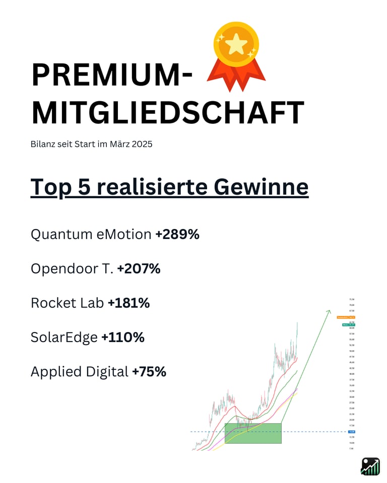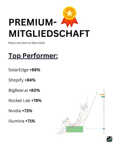 ⚠️ Wichtige Hinweise: Dieses Angebot dient ausschließlich Informations- und Anschauungszwecken und stellt keine Anlageberatung dar. Ich handele die besprochenen Werte in der Regel selbst (Interessenkonflikt). Risiko: Börsengeschäfte sind mit erheblichen Risiken bis hin zum Totalverlust verbunden. Die genannte Performance der Vergangenheit ist keine Garantie für künftige Gewinne. Es gelten die AGB.